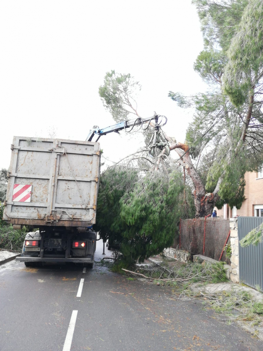 En estos momentos, los trabajos se centran, principalmente, en retirar las ramas que han sido podadas y que están en la vía pública. También en ultimar la limpieza de las calles más afectadas y con mayor dificultad de acceso.